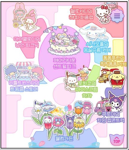 - 웰컴가든: 산리오 캐릭터들이 방문객을 맞이하는 환영의 정원